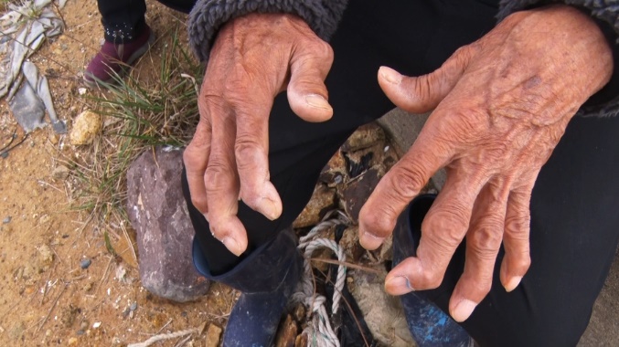 그러는 사이 행순 할아버지의 손가락을 비틀거리고 굽어졌고 너덜너덜해진 복근 탓에 허리는 펴기조차 어려운 상태가 되었습니다. 맨손으로 제방을 쌓아 올려 재기에 성공했지만 휘고 굽은 손가락은 아픈 훈장으로 남았습니다.
