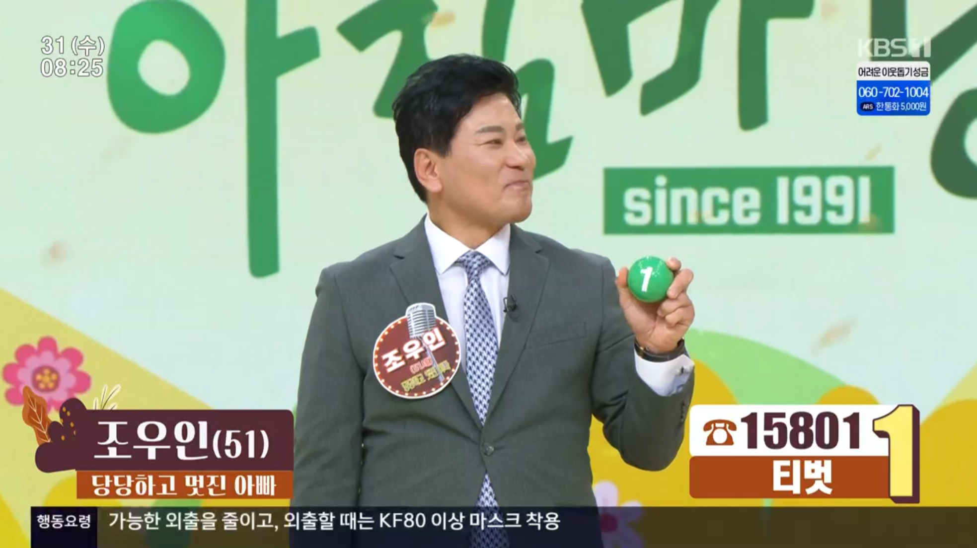 아침마당 1월 31일 수요일 도전 꿈의 무대 우승자는 오주헌이 새로운 1승을 했습니다.