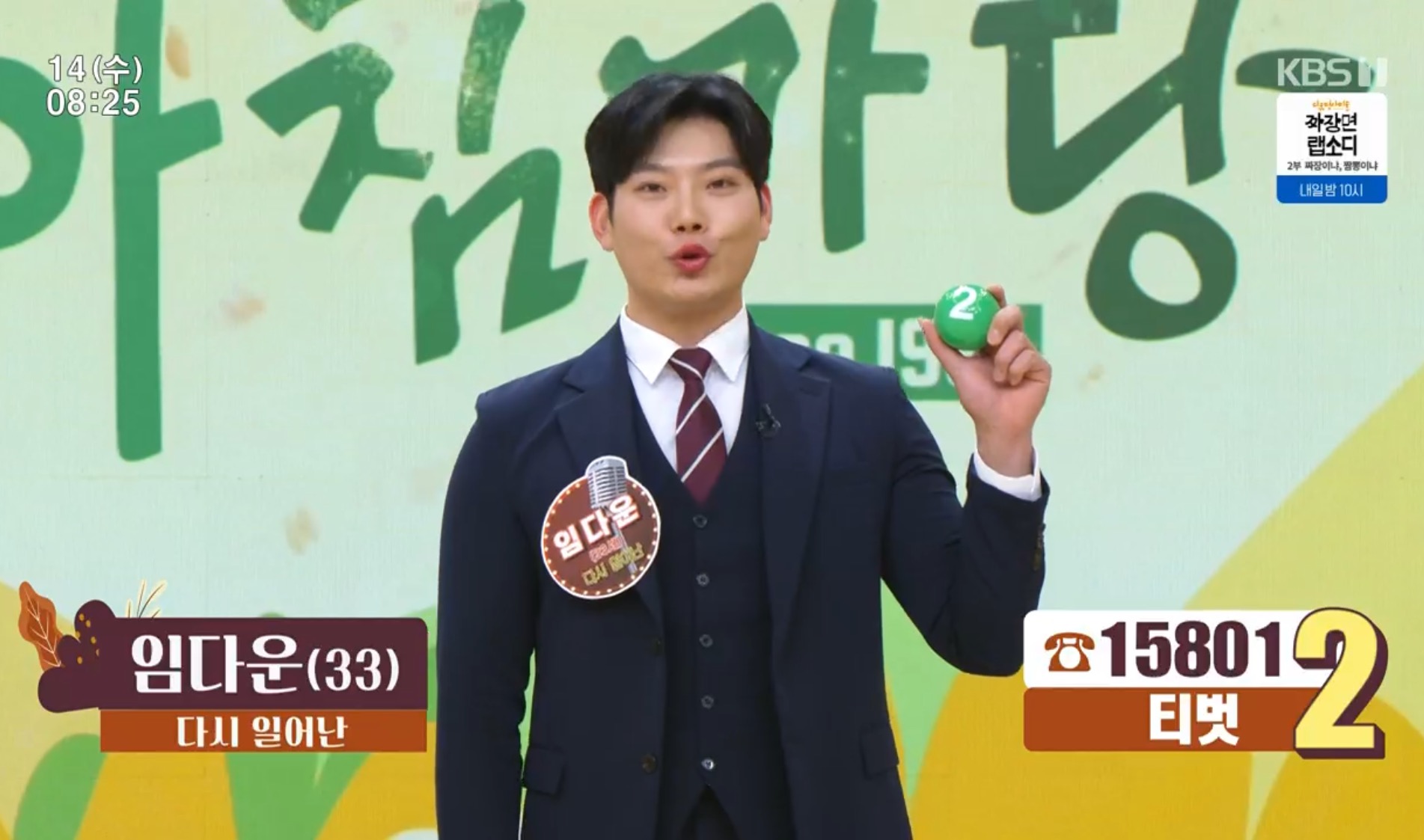 아침마당 2월 14일 수요일 도전 꿈의 무대 우승자는 임다운이 새로운 1승을 했습니다.