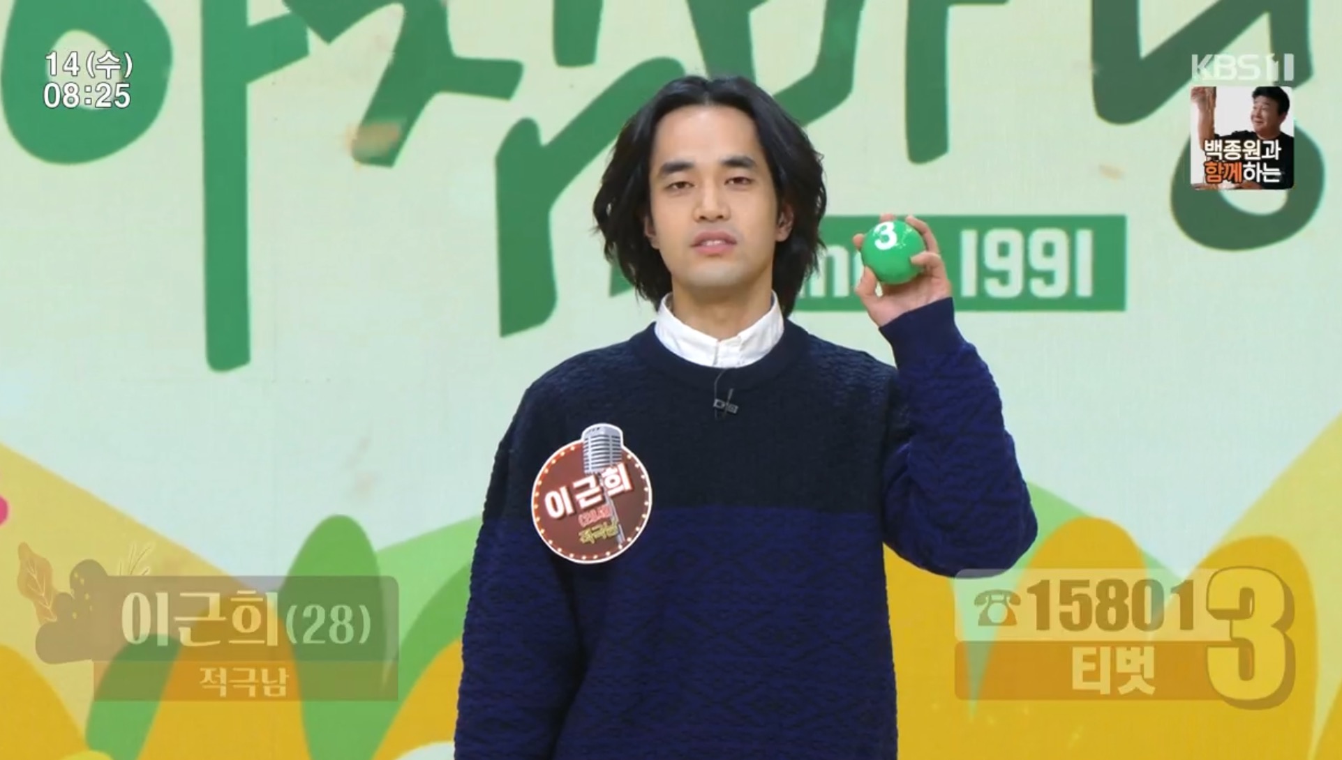 KBS1 아침마당 수요일 2월 14일 도전 꿈의 무대에는 오주헌 이승만 임다운 이근희 정해은이 출연했습니다. 가수 오주헌은 지난주 1승을 한 뒤 2승에 도전합니다.