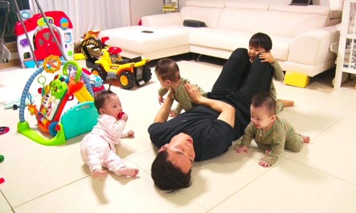아이를 돌보는 아빠가 늘었다지만 세쌍두잉를 포함해서 총 네명의 아이를 돌보는 남자는 흔하지 않습니다. 젖먹이 하나를 키우려면 허리 펼 새가 없는데다가 뭘 해도 세곱절입니다. 눈뜨면 세쌍둥이 분유를 먹이고 기저귀를 갈아주고 첫째를 깨우고 씻기며 어린이집에 보냅니다. 큰아이를 등원시키고 돌아오면 다시 세쌍둥이의 밥때입니다.