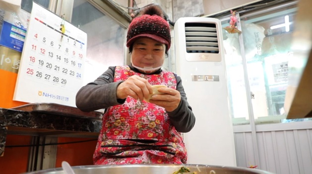 모란시장에서 만두를 빚고 있는 손칼국수 집 어머님을 만났습니다. 알고 보니 칼국수 경력만 35년 차입니다. 음식에 관해서라면 못 하는 게 없다는 허병순 어머님은 4년 전 병환으로 남편과 사별한 후 홀로 가게를 꾸려나가고 있다고합니다. 그런 사장님의 일생은 그야말로 고단한 나날의 연속이었습니다. 생활력 없던 남편 대신 우유 배달부터 커피 장사까지 생계를 이어가고자 안 해본 일이 없다고 합니다.