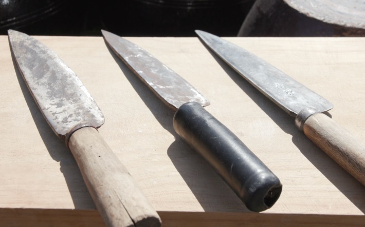 젊은 사람들이 한데 모여 공동작업을 하니 마을 어른들도 팔을 걷어붙이고 새참을 만들기 시작했습니다. 어머니들이 들고 온 칼은 하나같이 세월의 흔적이 묻은 오래된 무쇠 칼입니다.