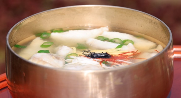 농수산물의 집산지인 해남에서 손님상에는 다양하고 유서깊은 음식들이 올라갑니다. 살이 단단하고 담백한 흰살 생선의 포를 만두피로 사용해서 어만두를 만들었습니다. 어만두는 옛 문헌 기록까지 남겨질 만큼 반가의 손님상에서 빠질 수 없는 음식입니다. 생전복을 데쳐서 방망이로 두드리고 말리는 작업을 20번 정도 반복한 후 보양 재료들과 끓여낸 추복탕까지 정성이 대단합니다.