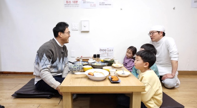 가던 길도 멈추고 아이들에게 말을 걸어보니 아빠가 우동 가게를 한다는 아이가 있었습니다. 마침 출출했던 차에 아이들과 함께 식당 안으로 들어가 송우현(44세) 사장을 만납니다. 그런데, 우동에 국물이 없었습니다. 마치 앙금 없는 찐빵처럼 놀란 이만기는 아이들과 함께 우동을 먹어봅니다.