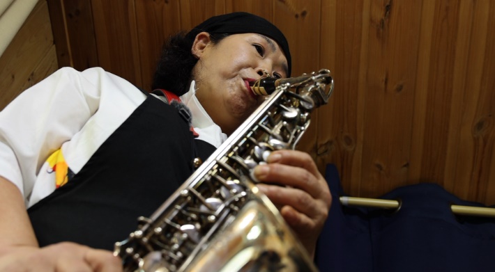 진안의 한적한 도로를 걷다 우연히 묵밥집을 발견했습니다. 언뜻보면 평범한 식당 같지만, 비즈 공예품부터 다양한 종류의 수석, 담금주까지 손재주 좋은 주인장의 취향이 고스란히 드러나는 공간입니다. 그중에서도 시선을 끄는 것은 다름 아닌 색소폰입니다. 주인장 김태정 씨가 얼마 전부터 취미로 불기 시작한 악기랍니다. 김태정 씨가 색소폰을 잡게 된 연유는 1년 전 아버지의 죽음을 겪고 나서부터입니다.