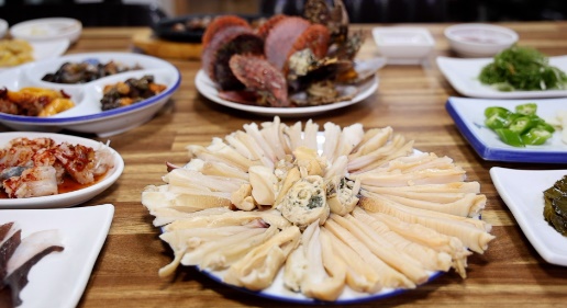 거제에 멸치, 대구, 도다리가 거제 특산물로 이름을 날리던 시절에 다크호스처럼 등장한 녀석이 있습니다. 코끼리 코 모양을 닮아 이름 붙여진 코끼리 조개가 바로 주인공입니다. 거제에서는 약 10년 전부터 채취해 먹기 시작했다는 코끼리 조개는 청정 거제 앞바다에서 가장 많이 잡힙니다. 깊은 바다 속에 살아 전문 잠수부가 아니면 잡기도 어려운 코끼리 조개는 손질에도 요령이 필요한 까다로운 어종이라고 합니다.